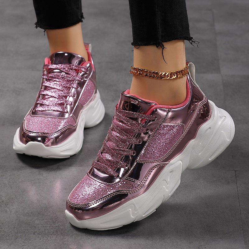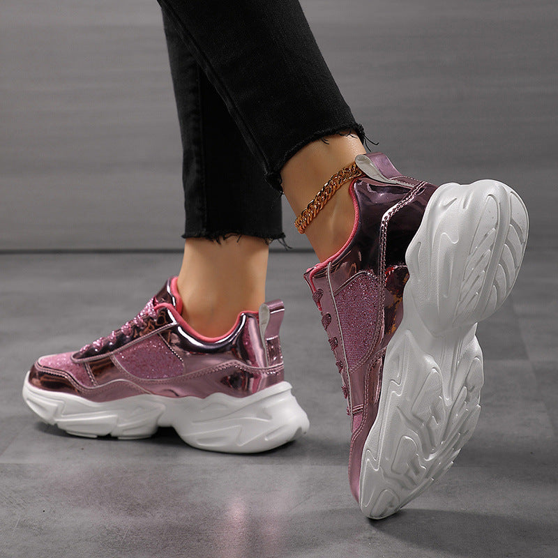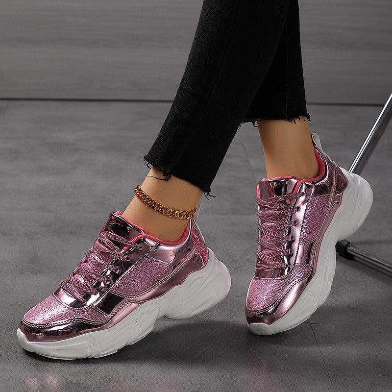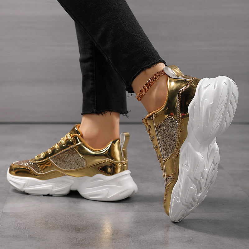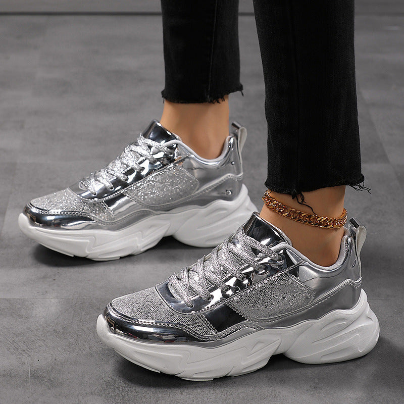 Deze lichtgewicht chunky sneakers met glitterfinish tillen elke outfit naar een hoger niveau – van festival tot streetlook.